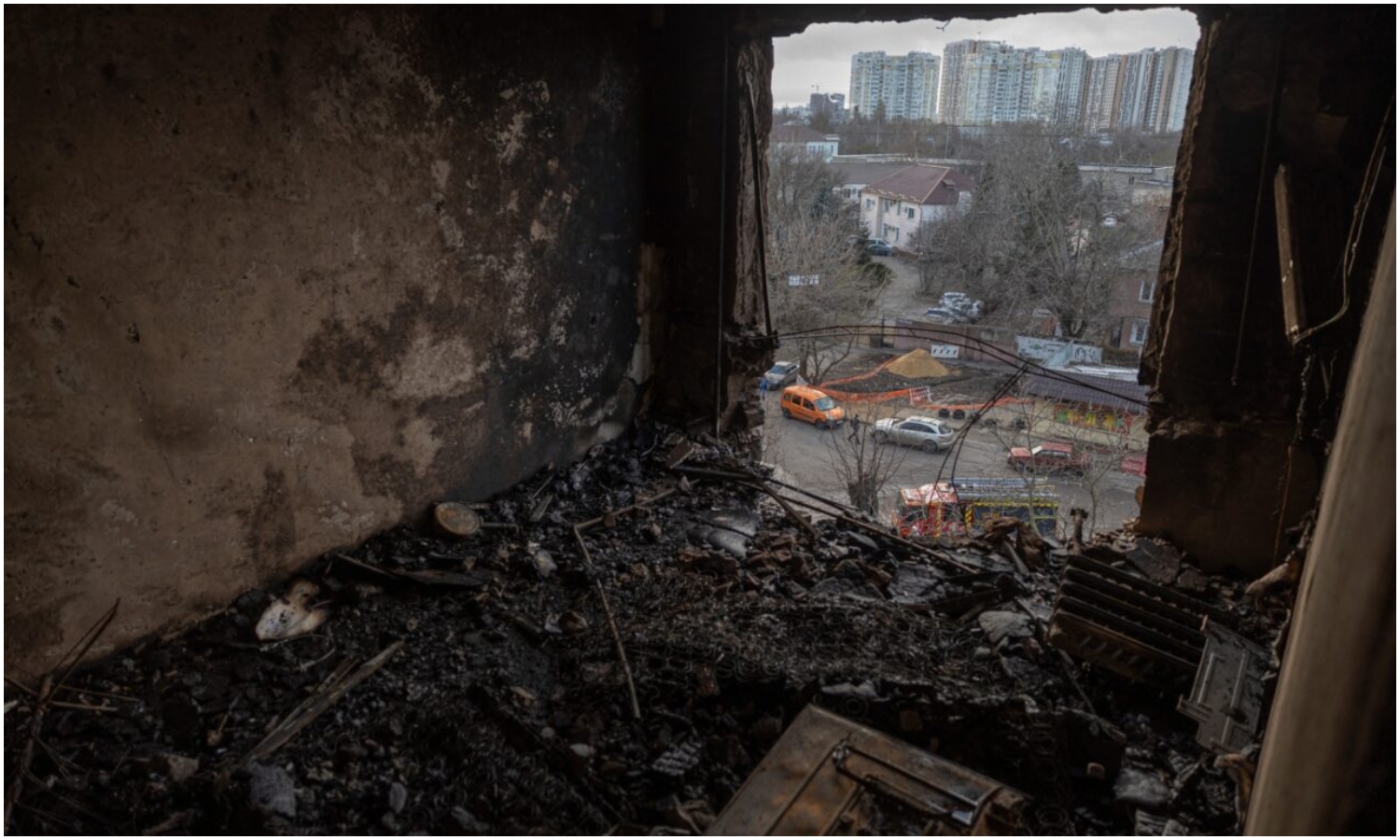 El impacto alcanzó directamente una vivienda familiar, lo que provocó su colapso y un incendio posterior en el sector