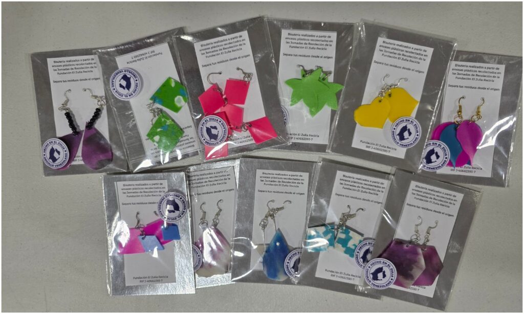 A partir de esa exploración, el equipo decidió llevar la teoría a la práctica y ampliar el trabajo que ya venían desarrollando en la creación de piezas de bisutería elaboradas con plástico fundido para venderlas y generar ingresos dentro de la fundación.