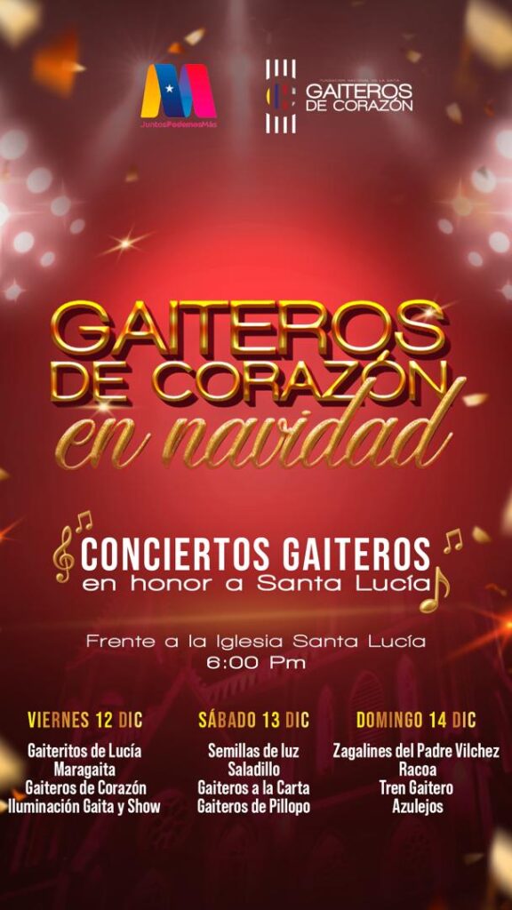 La Fundación Nacional de la Gaita Gaiteros de Corazón invita a toda la comunidad a disfrutar de estos conciertos gratuitos, que además de brindar entretenimiento, buscan fortalecer la tradición y transmitir el espíritu navideño a través de la música.