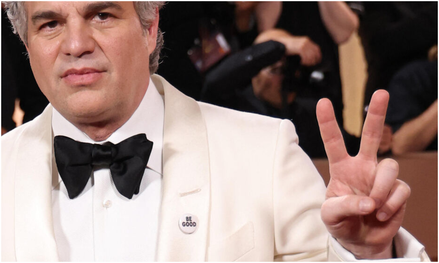 Durante la alfombra roja de los Globos de Oro, el pasado domingo, un periodista le preguntó a Ruffalo qué significaba una insignia que llevaba en su traje que decía «Sé bueno».